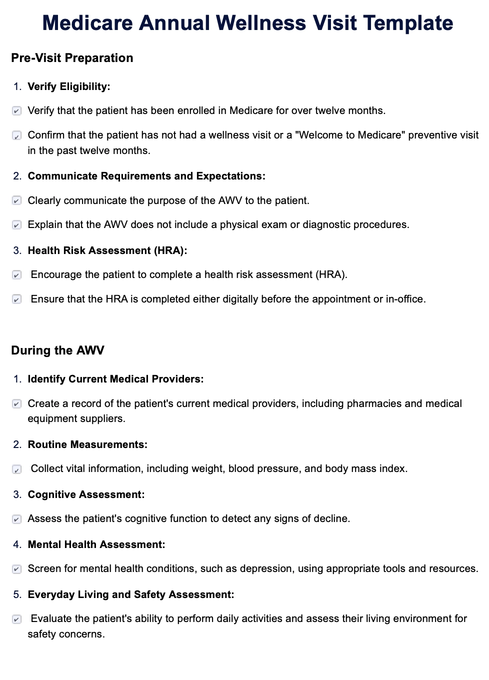 Medicare Annual Wellness Visit Template Aafp One Checklist That You Should Keep In Mind Befo